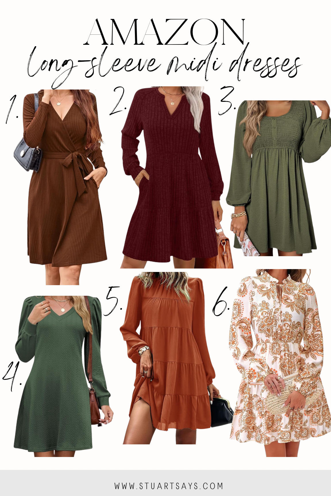 Amazon offers midi dresses in everything from cozy ribbed knits to lightweight fabrics with autumn-inspired patterns. These styles are perfect for work, running errands, or even casual date nights.